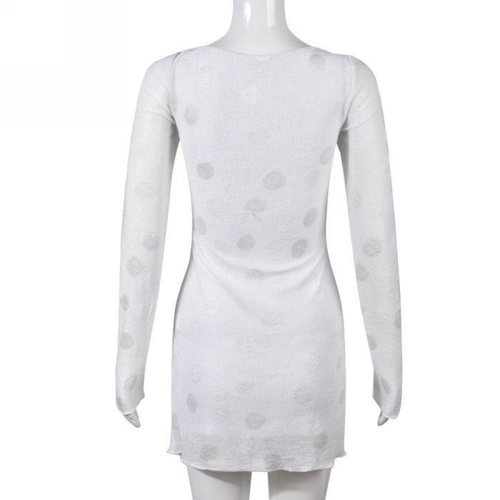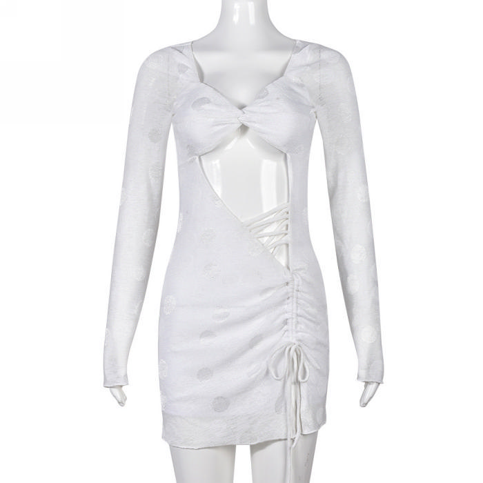 (Real Image)2022 Styles Women Fashion Spring&Winter TikTok&Instagram Styles Lace Mesh Cut Out Club DressSKU: #CF59349-1