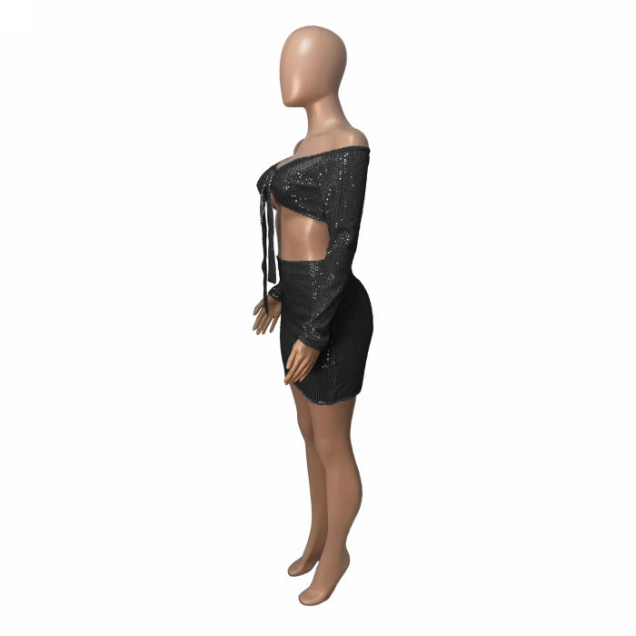 (Real Image)2022 Styles Women Fashion Spring&Winter TikTok&Instagram Styles Lace Sequin Mini DressSKU: #OEM5765-3