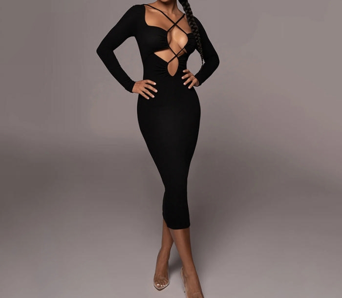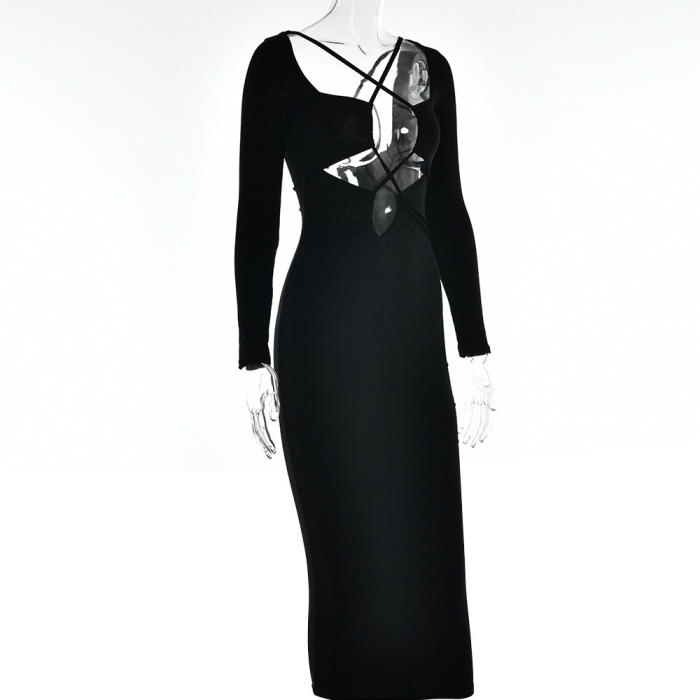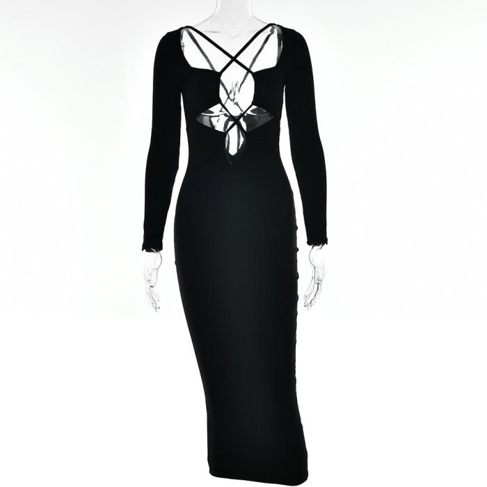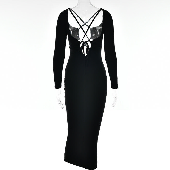 (Real Image)2022 Styles Women Fashion Spring&Winter TikTok&Instagram Styles Long Sleeve Lace Up Maxi DressSKU: #XF62581-1