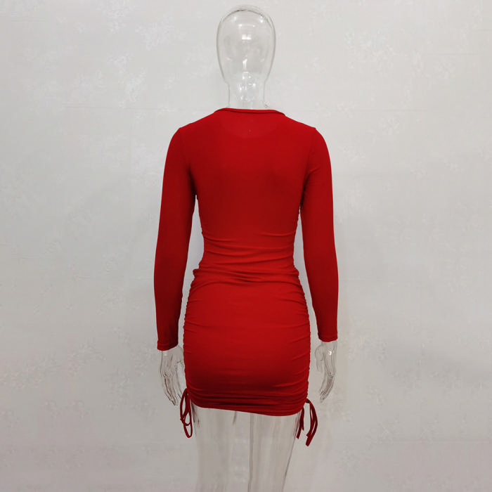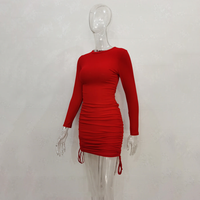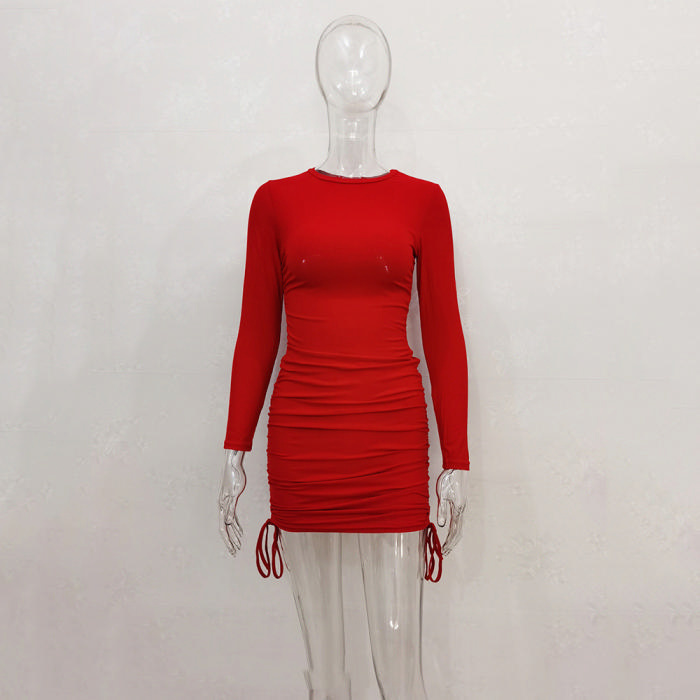 (Real Image)2022 Styles Women Fashion Spring&Winter TikTok&Instagram Styles Long Sleeve Solid Color Casual Mini DressSKU: #CF34070-3