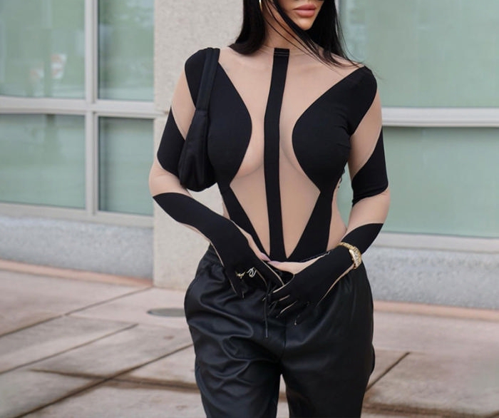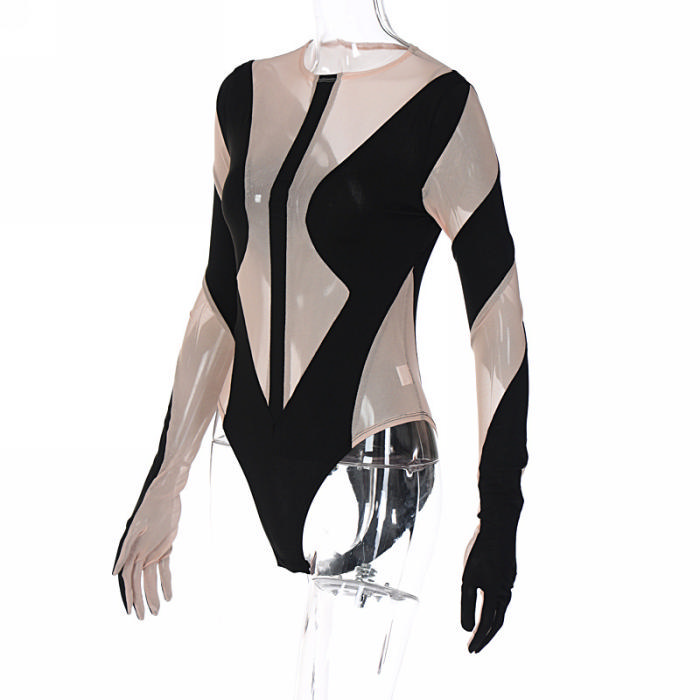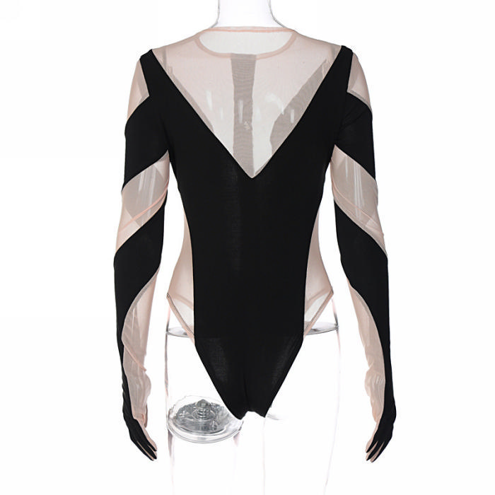 (Real Image)2022 Styles Women Fashion Spring&Winter TikTok&Instagram Styles Mesh Long Sleeve BodysuitSKU: #CF22872-1