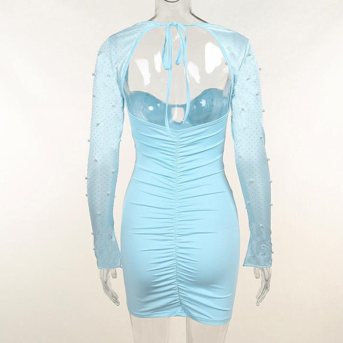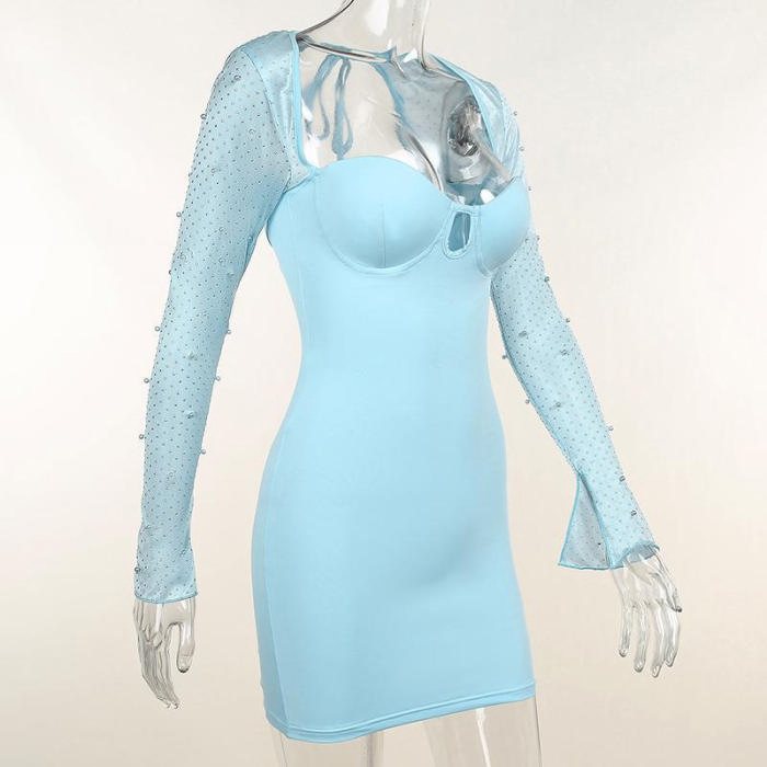 (Real Image)2022 Styles Women Fashion Spring&Winter TikTok&Instagram Styles Mesh Long Sleeve Mini DressSKU: #OM0286-1