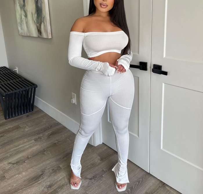 (Real Image)2022 Styles Women Fashion Spring&Winter TikTok&Instagram Styles Off Shoulder Two Piece SuitSKU: #OEM5764-1
