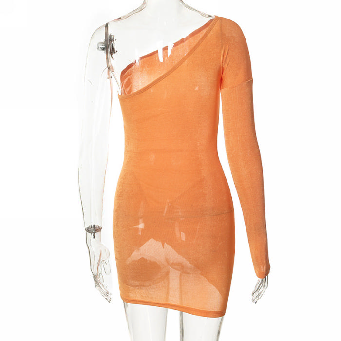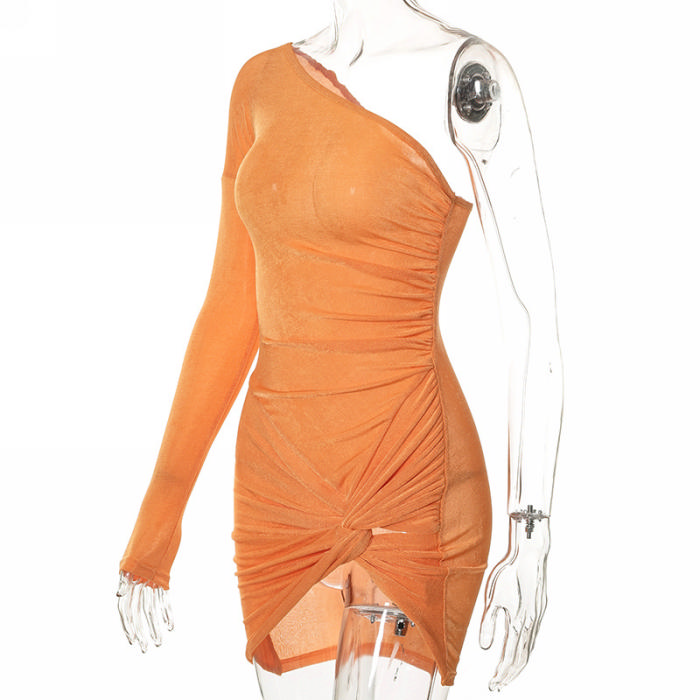 (Real Image)2022 Styles Women Fashion Spring&Winter TikTok&Instagram Styles Orange Single Shoulder Cut Out Club DressSKU: #CF68162-1