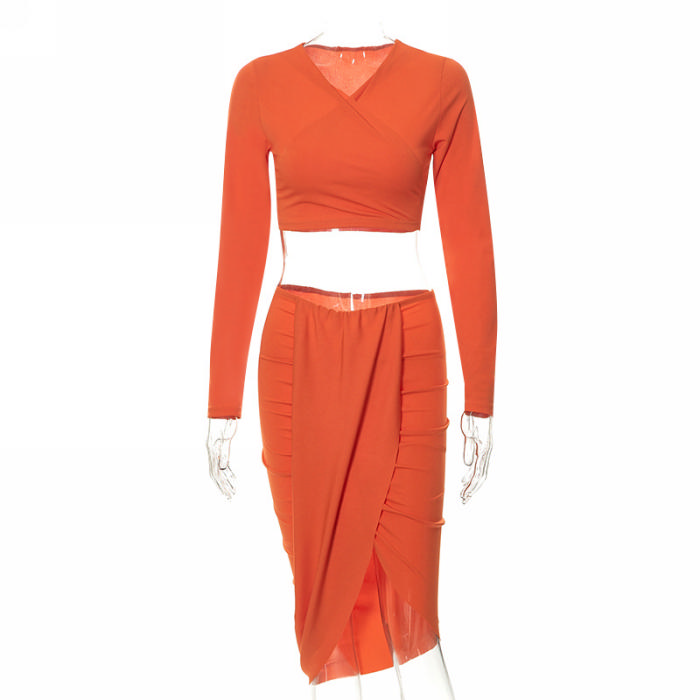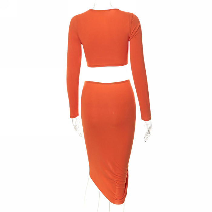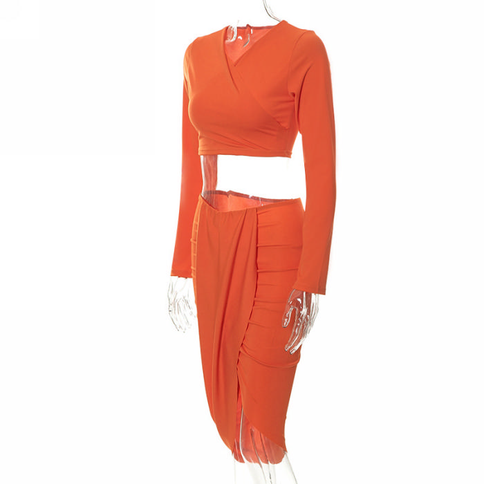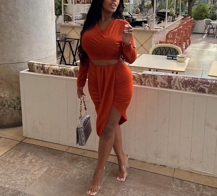 (Real Image)2022 Styles Women Fashion Spring&Winter TikTok&Instagram Styles Orange Two Piece DressSKU: #CF68136-1