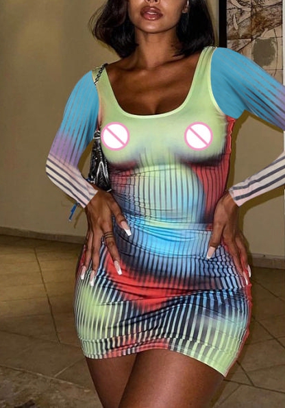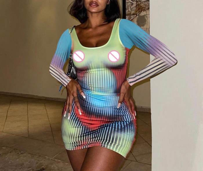(Real Image)2022 Styles Women Fashion Spring&Winter TikTok&Instagram Styles PRint Long Sleeve Mini DressSKU: #CF22834-1