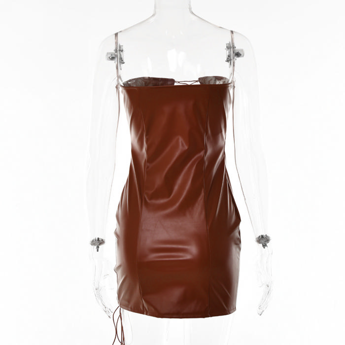 (Real Image)2022 Styles Women Fashion Spring&Winter TikTok&Instagram Styles PU Lace Up Club DressSKU: #XF62585-2