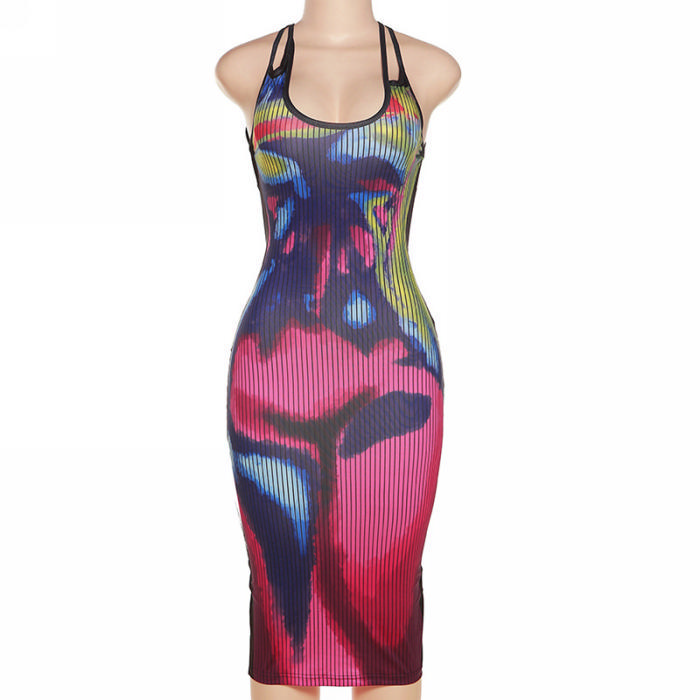 (Real Image)2022 Styles Women Fashion Spring&Winter TikTok&Instagram Styles Print Backless Maxi DressSKU: #CF48911-1