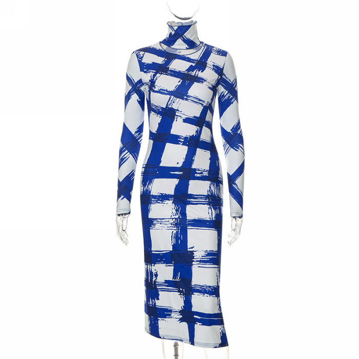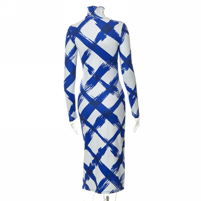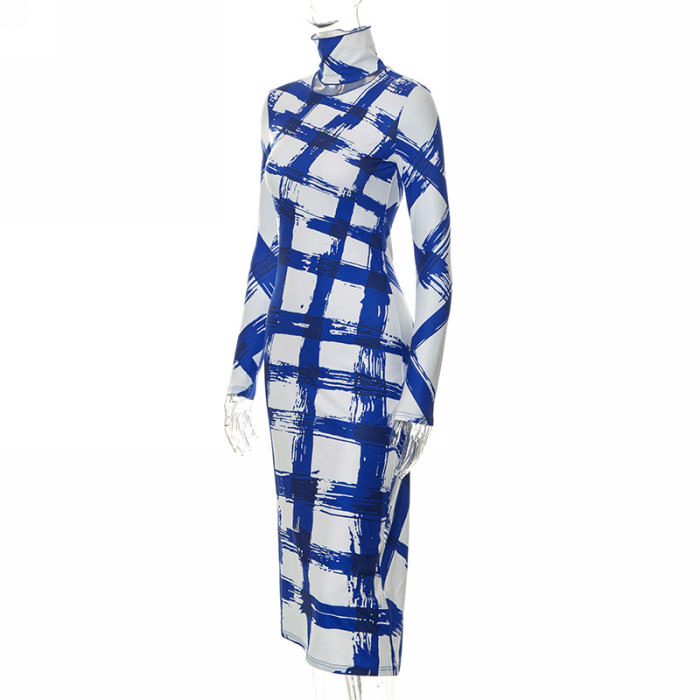 (Real Image)2022 Styles Women Fashion Spring&Winter TikTok&Instagram Styles Print Blue Long Sleeve Maxi DressSKU: #CF68128-1
