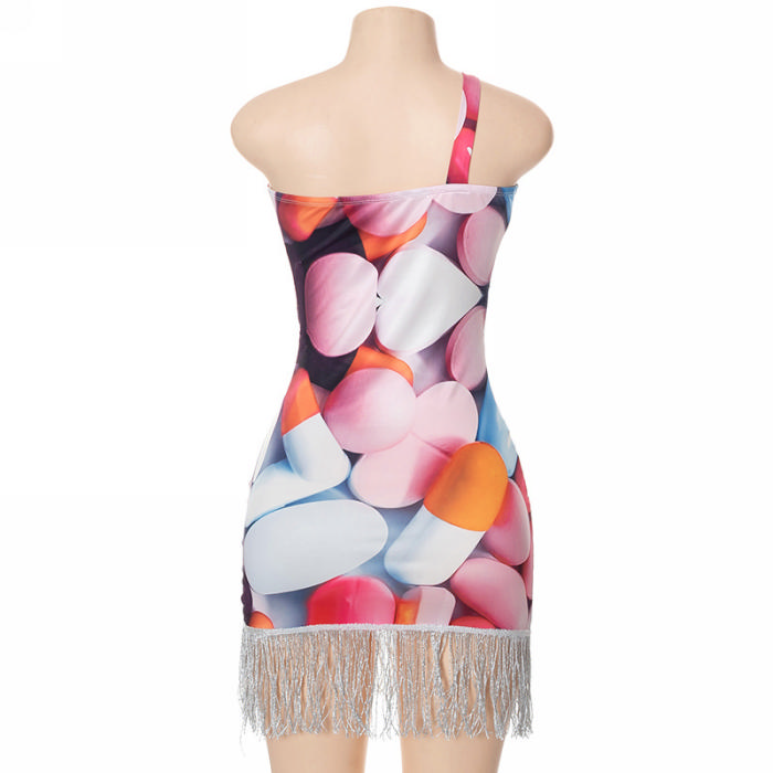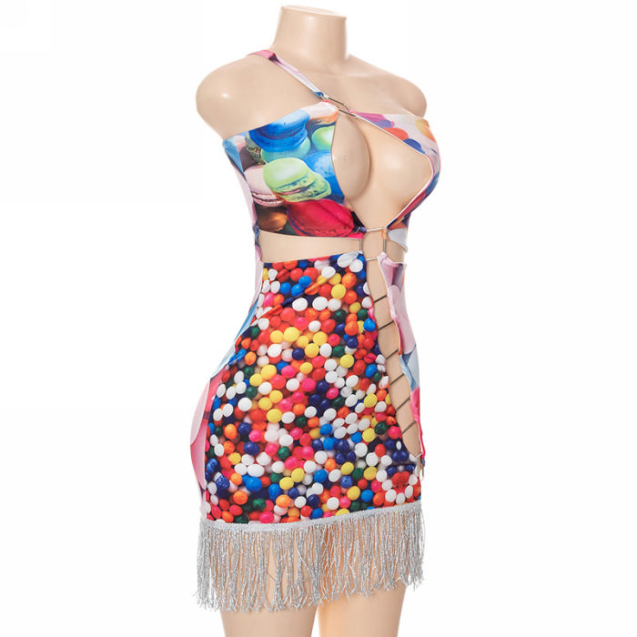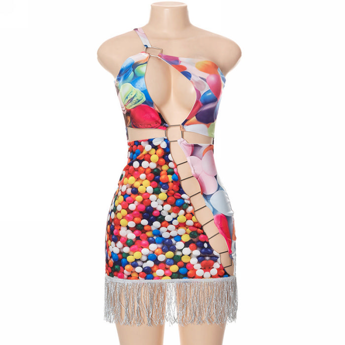 (Real Image)2022 Styles Women Fashion Spring&Winter TikTok&Instagram Styles Print Cut Out Tassel Club DressSKU: #CF65085-1