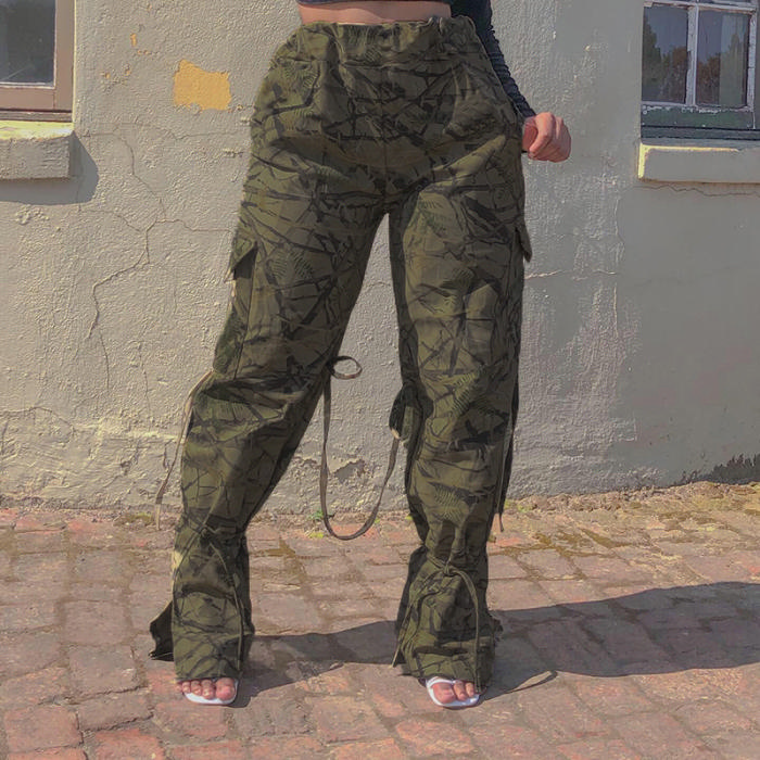 (Real Image)2022 Styles Women Fashion Spring&Winter TikTok&Instagram Styles Print Khaki Long PantsSKU: #CF68118-1