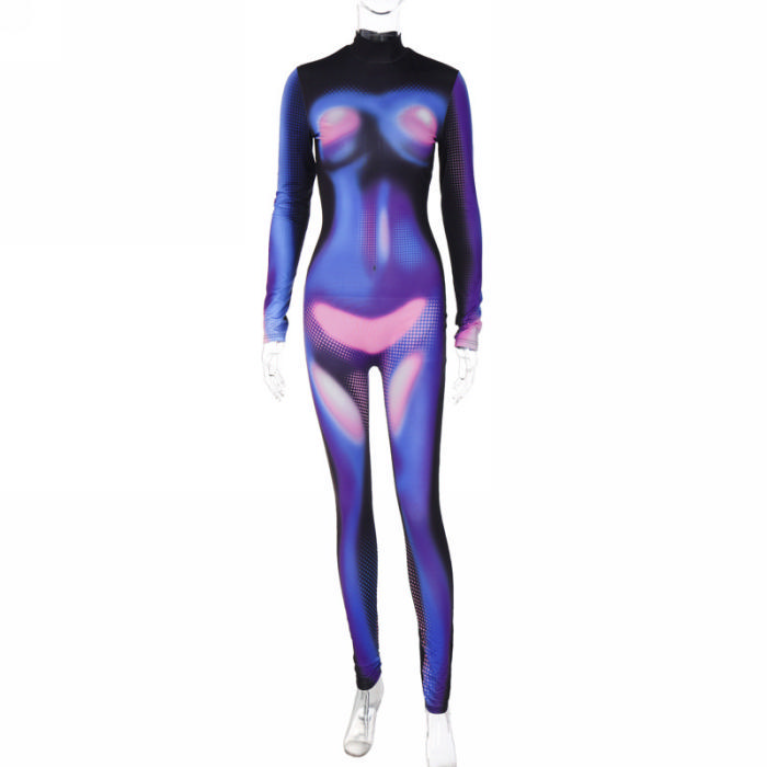 (Real Image)2022 Styles Women Fashion Spring&Winter TikTok&Instagram Styles Print Long Sleeve JumpsuitSKU: #CF22864-1