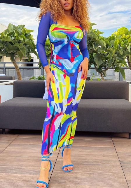 (Real Image)2022 Styles Women Fashion Spring&Winter TikTok&Instagram Styles Print Mesh Long Sleeve Maxi DressSKU: #CF59348-1