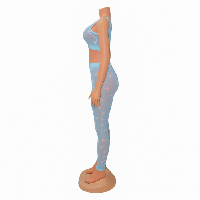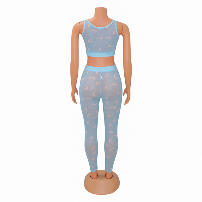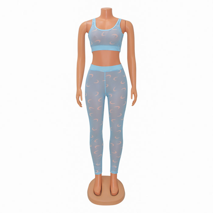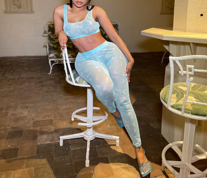(Real Image)2022 Styles Women Fashion Spring&Winter TikTok&Instagram Styles Print Mesh Two Piece SuitSKU: #OEM5800-1