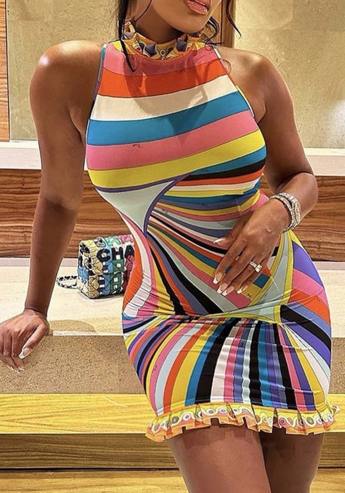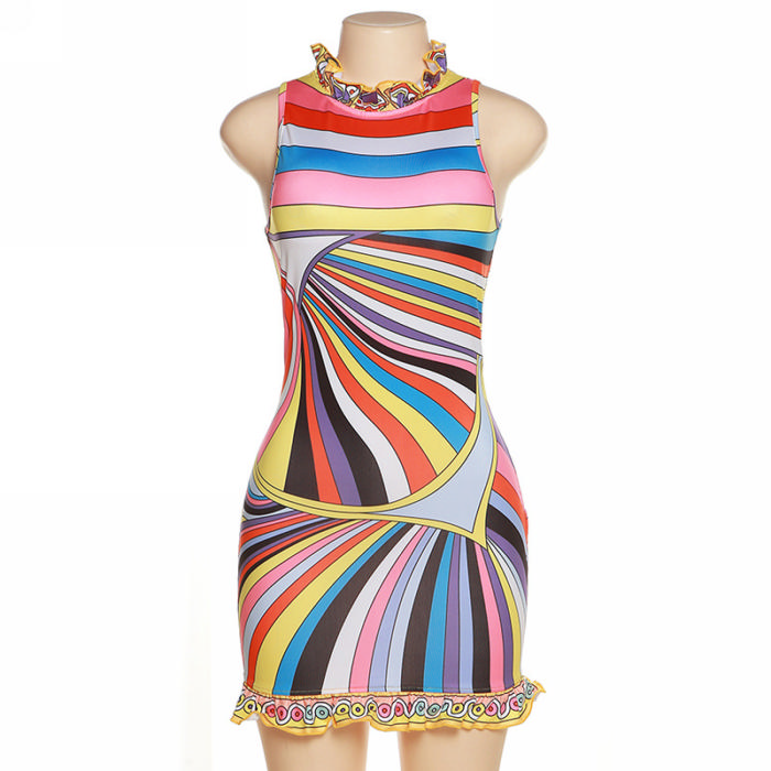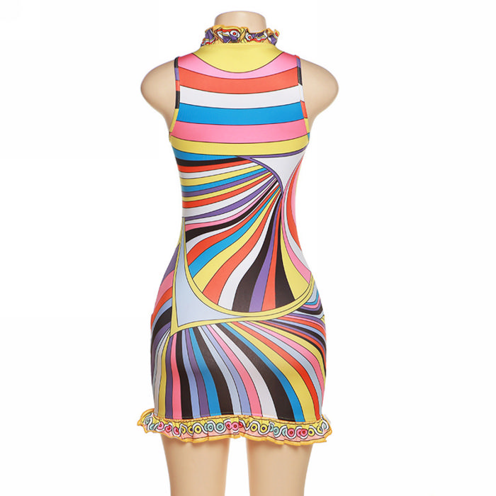 (Real Image)2022 Styles Women Fashion Spring&Winter TikTok&Instagram Styles Print Sleeveless Mini DressSKU: #CF48878-1