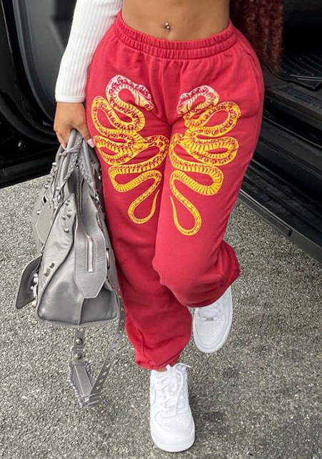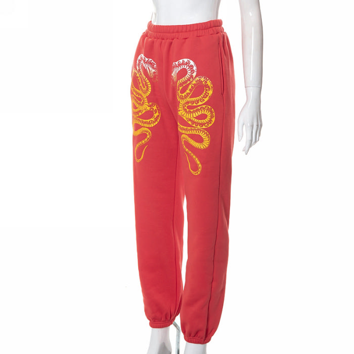 (Real Image)2022 Styles Women Fashion Spring&Winter TikTok&Instagram Styles Print Snake Long PantsSKU: #OM0321-1