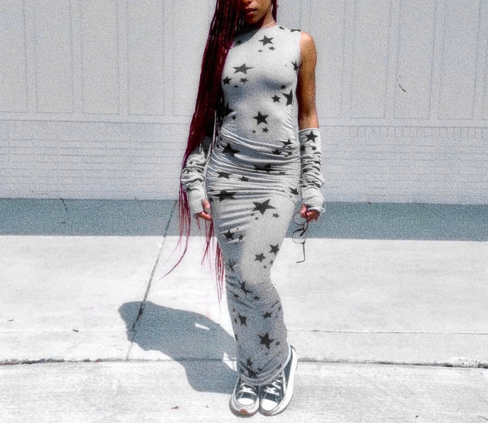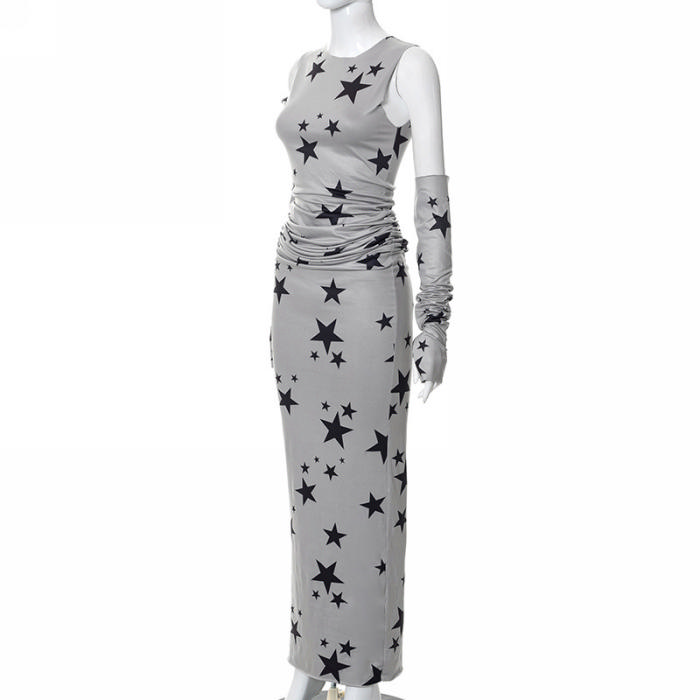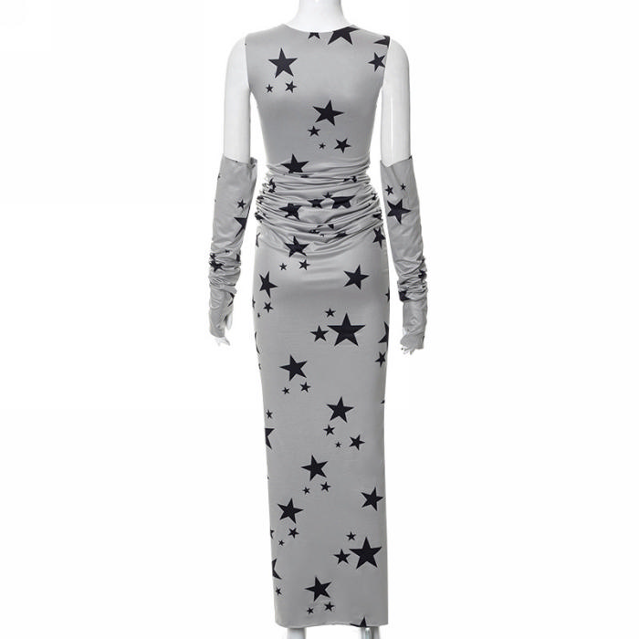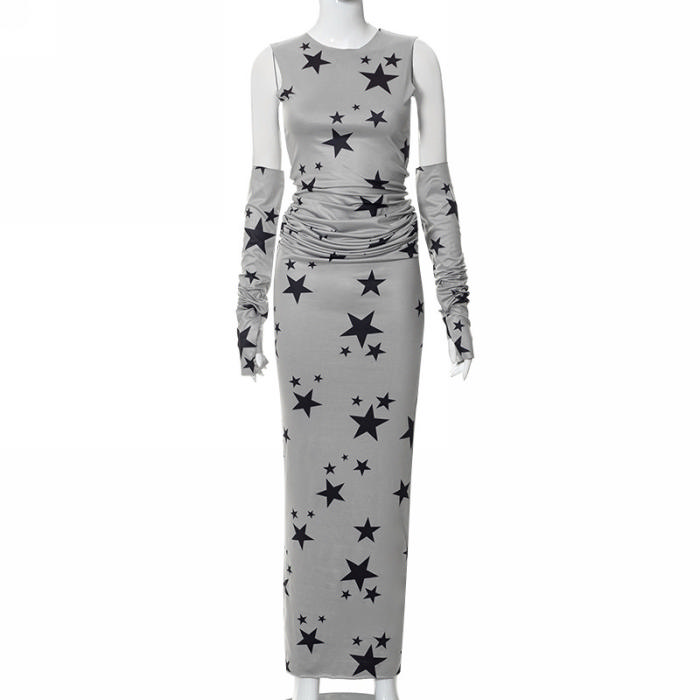 (Real Image)2022 Styles Women Fashion Spring&Winter TikTok&Instagram Styles Print Star Gray Maxi DressSKU: #CF68108-1