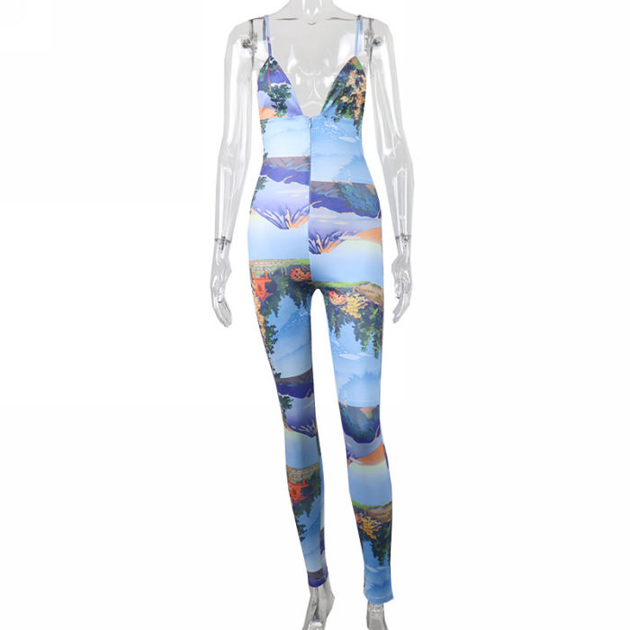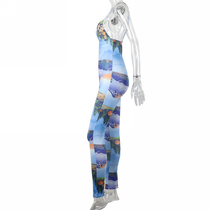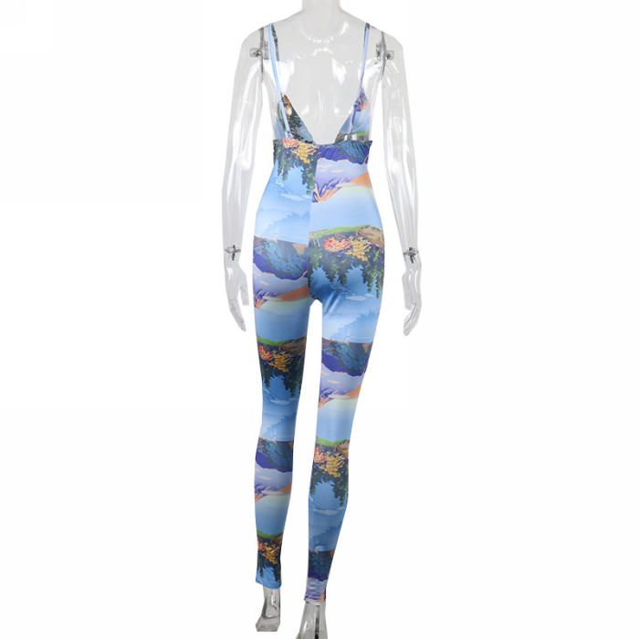 (Real Image)2022 Styles Women Fashion Spring&Winter TikTok&Instagram Styles Print Strap JumpsuitSKU: #OM0287-1