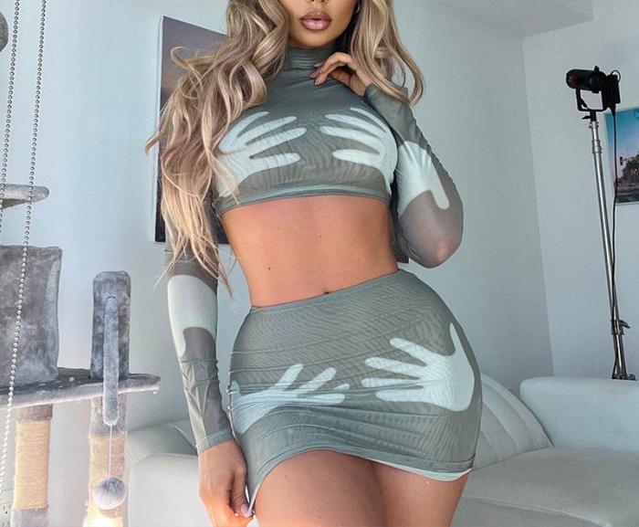 (Real Image)2022 Styles Women Fashion Spring&Winter TikTok&Instagram Styles Print Two Piece DressSKU: #CF22862-1