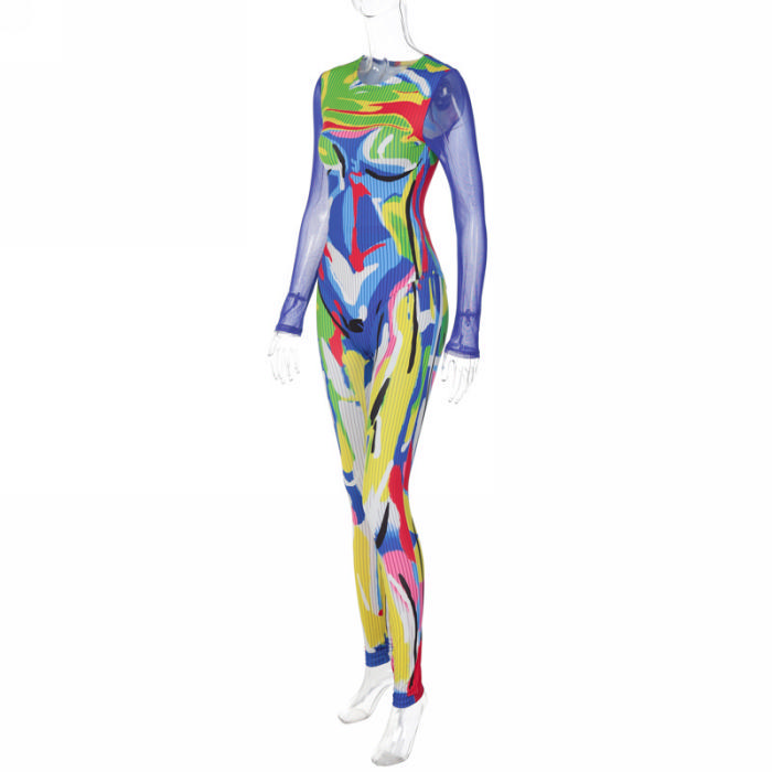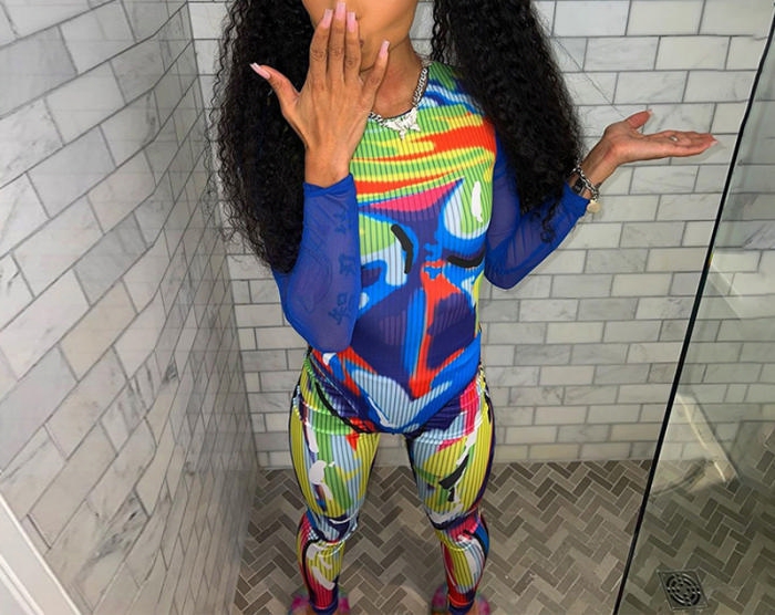 (Real Image)2022 Styles Women Fashion Spring&Winter TikTok&Instagram Styles Print Two Piece Suit Bodysuit+Long PantsSKU: #CF22858-1
