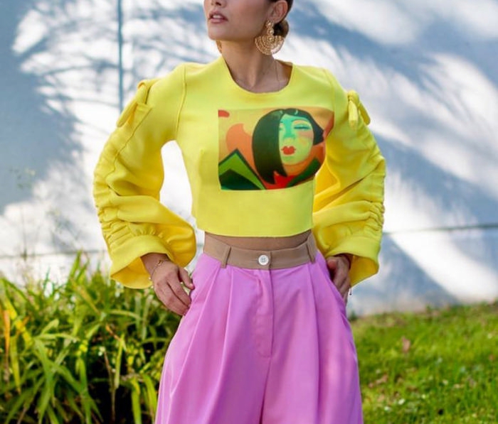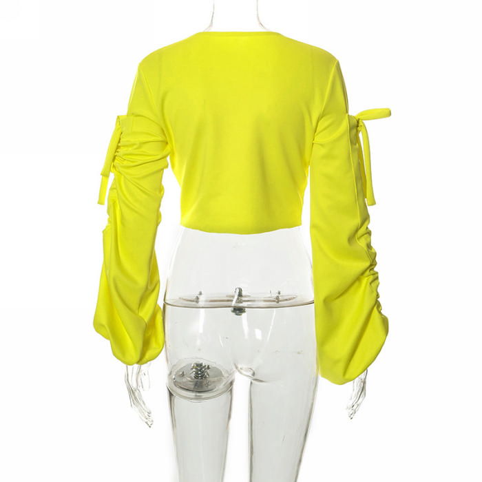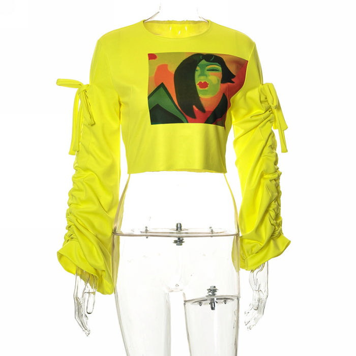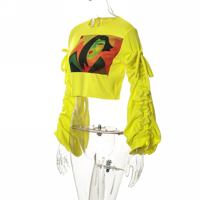 (Real Image)2022 Styles Women Fashion Spring&Winter TikTok&Instagram Styles Print Yellow Lace Up TopsSKU: #CF68124-1