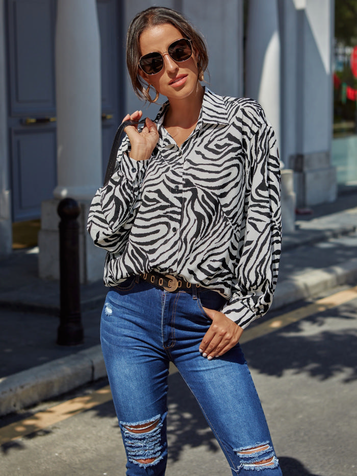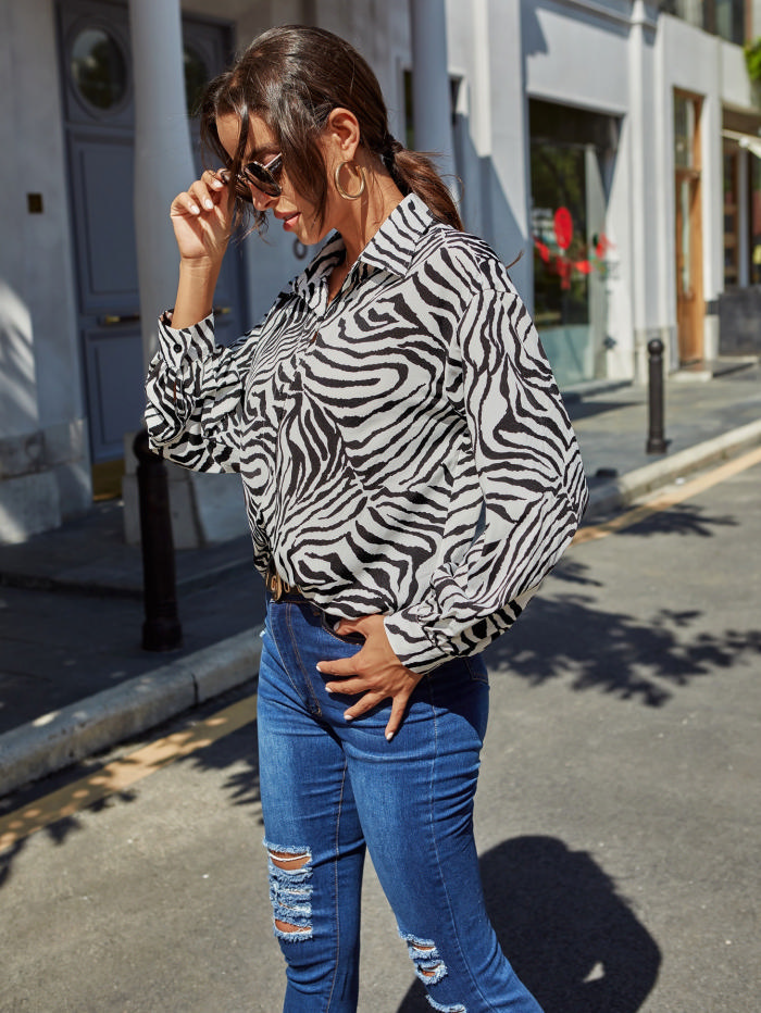 (Real Image)2022 Styles Women Fashion Spring&Winter TikTok&Instagram Styles Print Zebra Front Button Long Sleeve ShirtsSKU: #XF33802-1