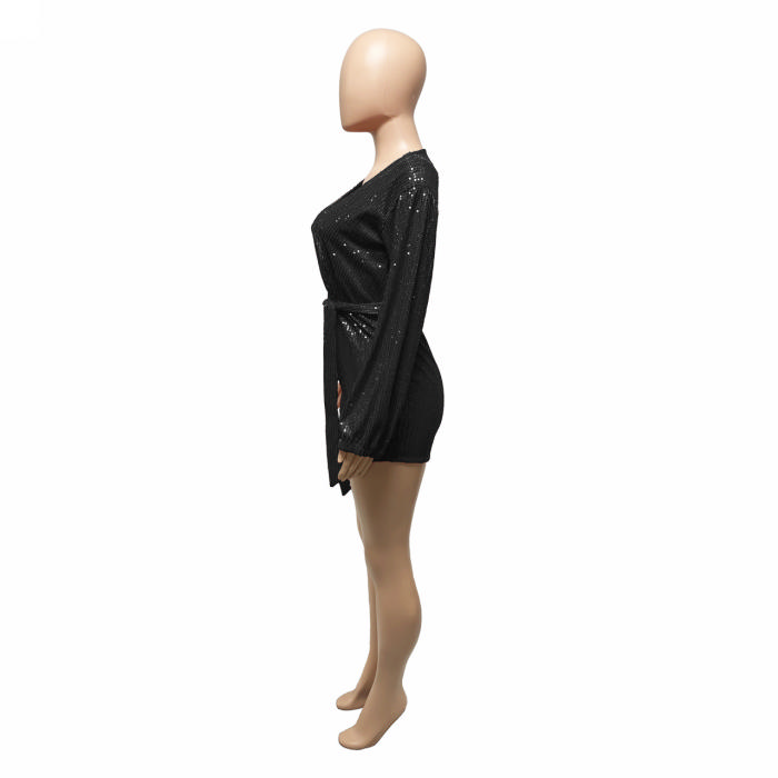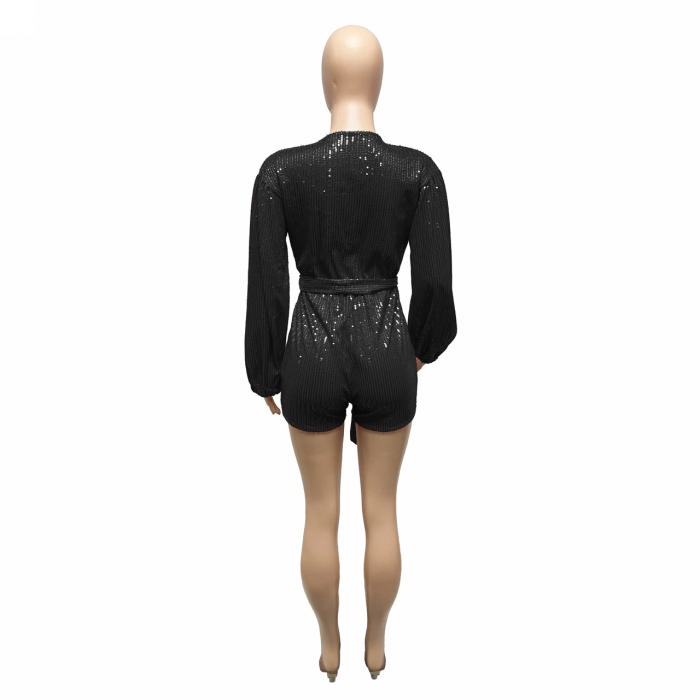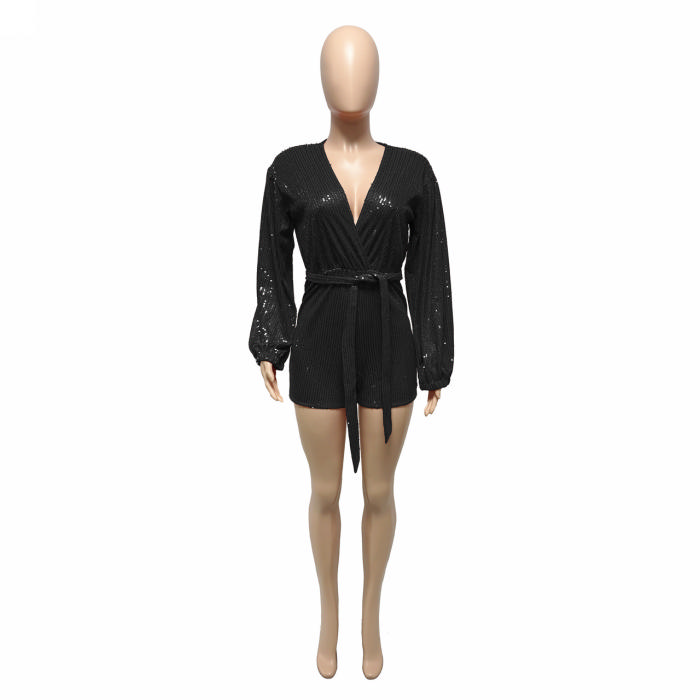 (Real Image)2022 Styles Women Fashion Spring&Winter TikTok&Instagram Styles Sequin Deep V Neck RomperSKU: #OEM5768-1