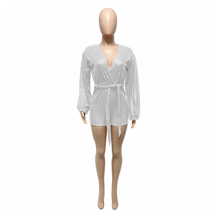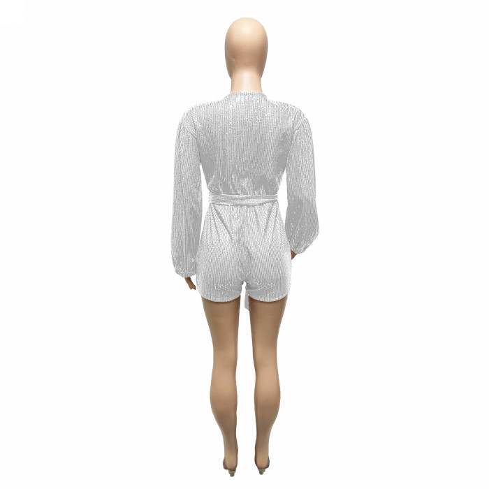 (Real Image)2022 Styles Women Fashion Spring&Winter TikTok&Instagram Styles Sequin Deep V Neck RomperSKU: #OEM5768-4