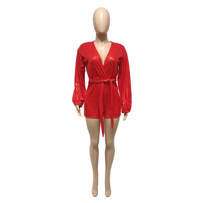 (Real Image)2022 Styles Women Fashion Spring&Winter TikTok&Instagram Styles Sequin Deep V Neck RomperSKU: #OEM5768-3