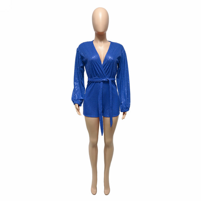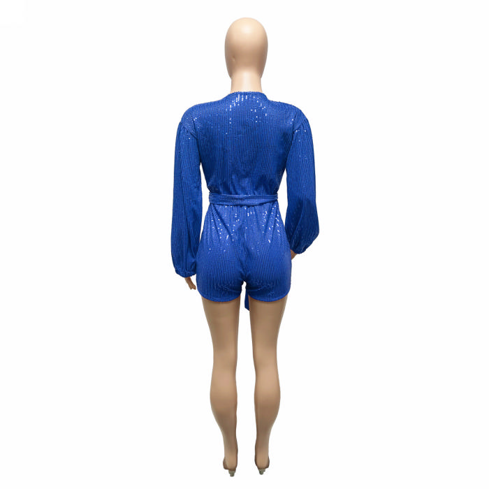 (Real Image)2022 Styles Women Fashion Spring&Winter TikTok&Instagram Styles Sequin Deep V Neck RomperSKU: #OEM5768-2