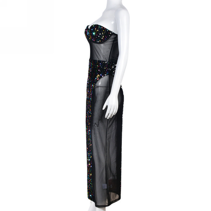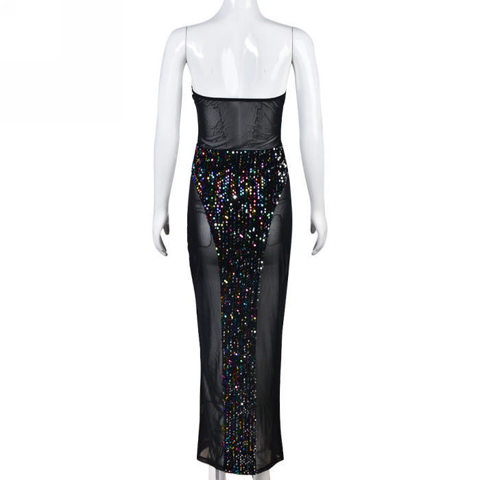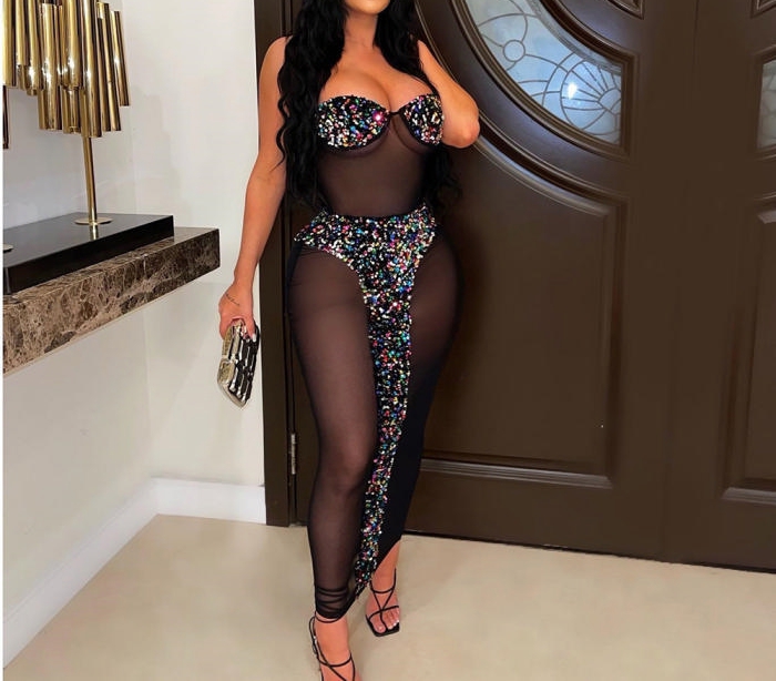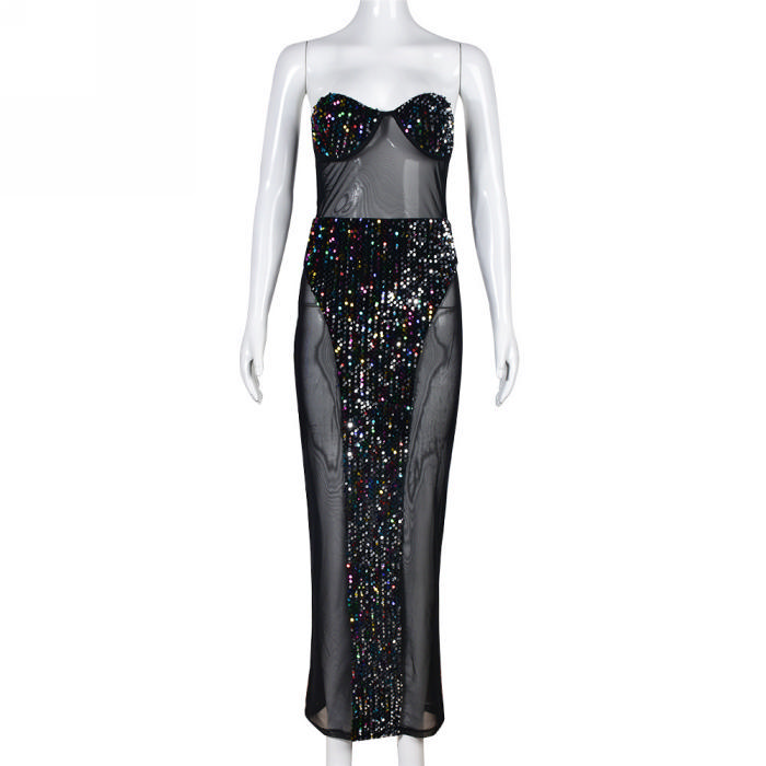 (Real Image)2022 Styles Women Fashion Spring&Winter TikTok&Instagram Styles Sequin Mesh Maxi DressSKU: #CF59359-1