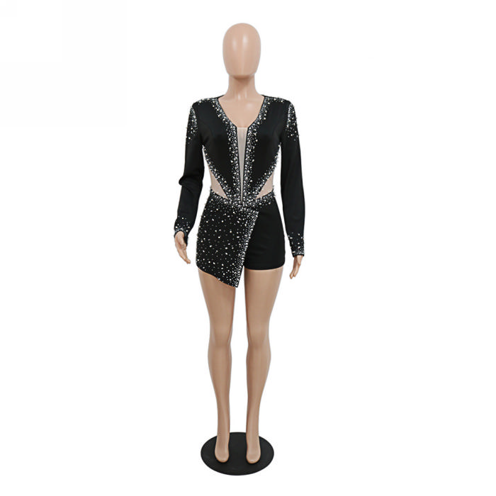 (Real Image)2022 Styles Women Fashion Spring&Winter TikTok&Instagram Styles Sequins Long Sleeve Romper JumpsuitSKU: #OEM5783-1