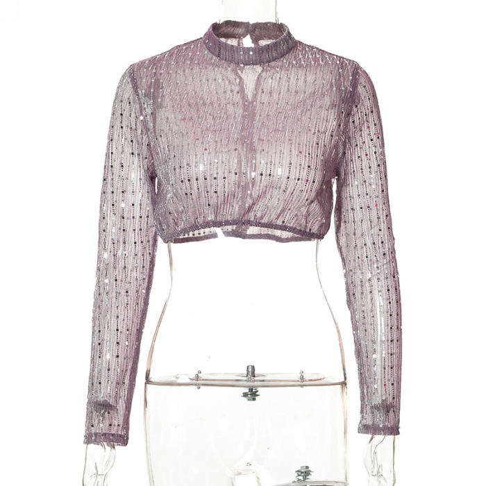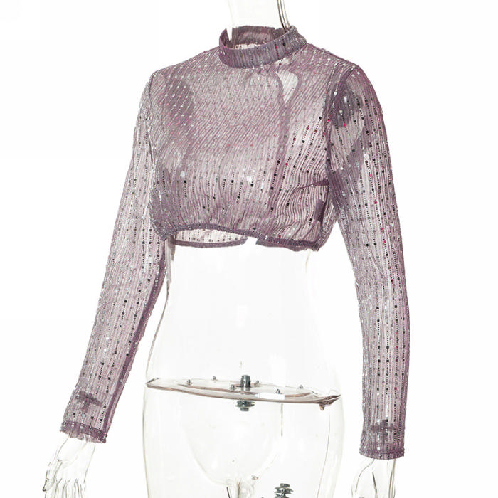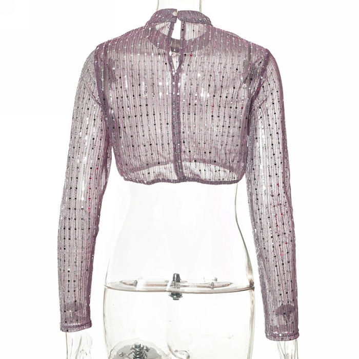 (Real Image)2022 Styles Women Fashion Spring&Winter TikTok&Instagram Styles Sequins Long Sleeve Tank TopsSKU: #CF68165-1