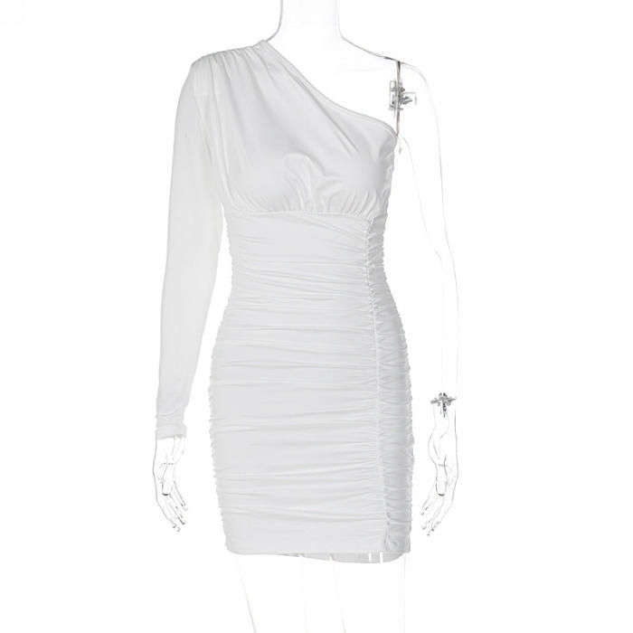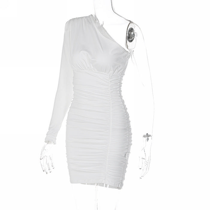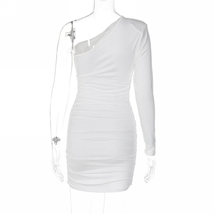 (Real Image)2022 Styles Women Fashion Spring&Winter TikTok&Instagram Styles Single Shoulder Long Sleeve Mini DressSKU: #CF22838-1