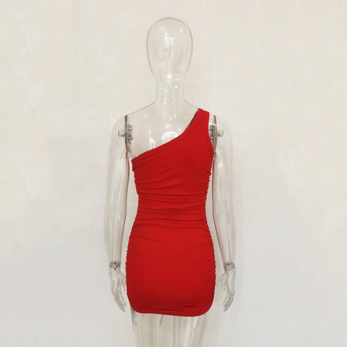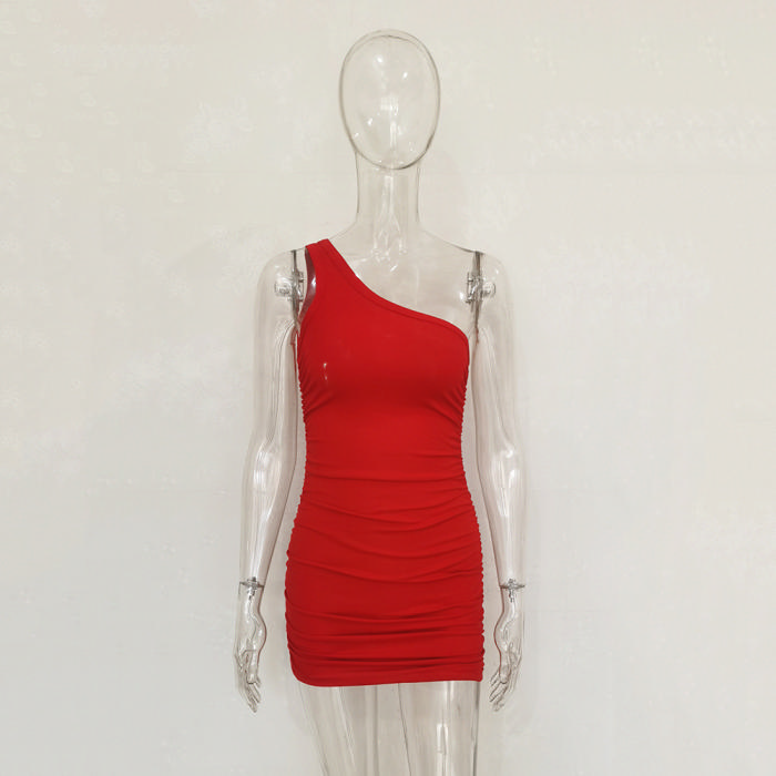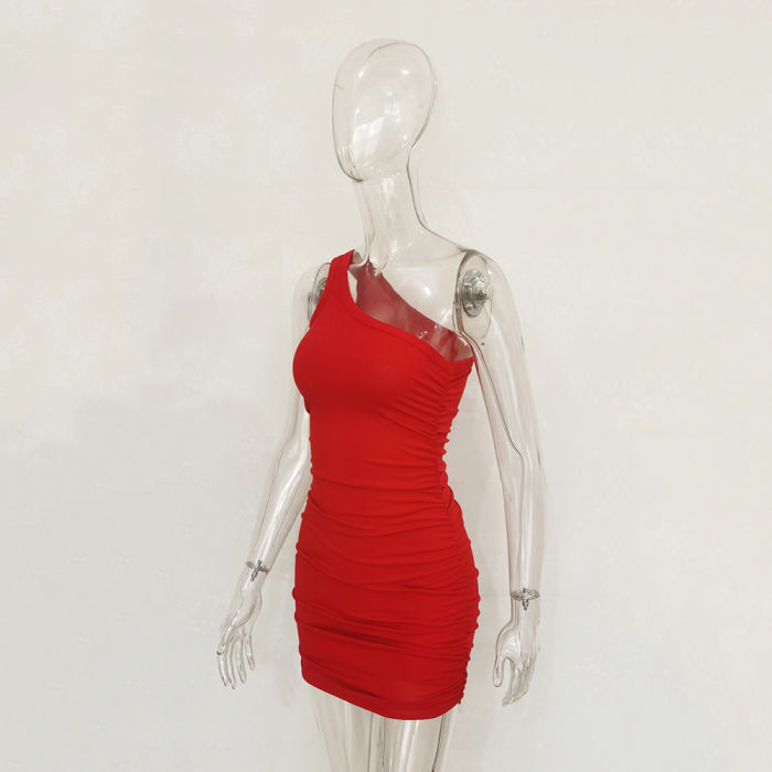 (Real Image)2022 Styles Women Fashion Spring&Winter TikTok&Instagram Styles Single Shoulder Mini DressSKU: #CF34066-4