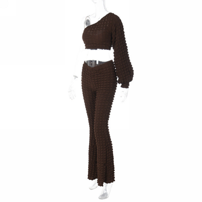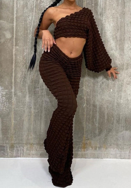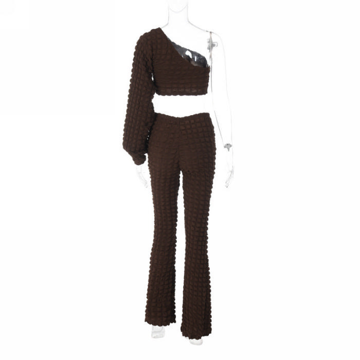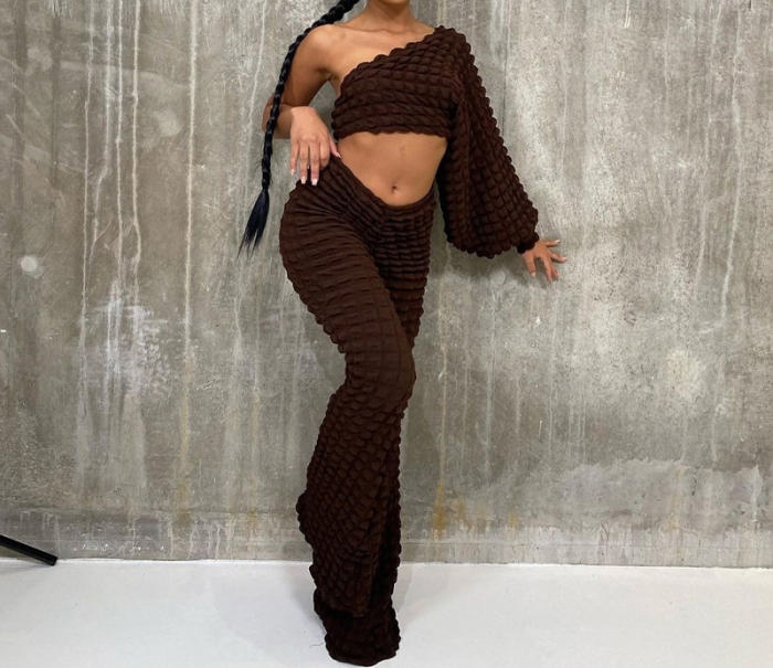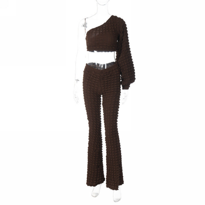 (Real Image)2022 Styles Women Fashion Spring&Winter TikTok&Instagram Styles Single Shoulder Two Piece SuitSKU: #CF22856-1