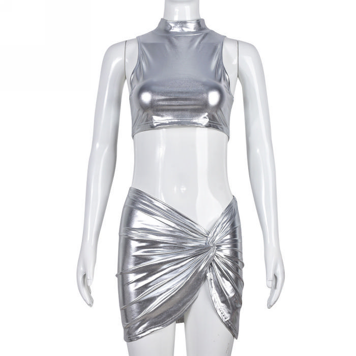 (Real Image)2022 Styles Women Fashion Spring&Winter TikTok&Instagram Styles Sliver Two Piece DressSKU: #CF59368-1