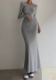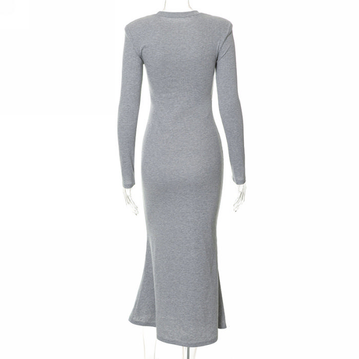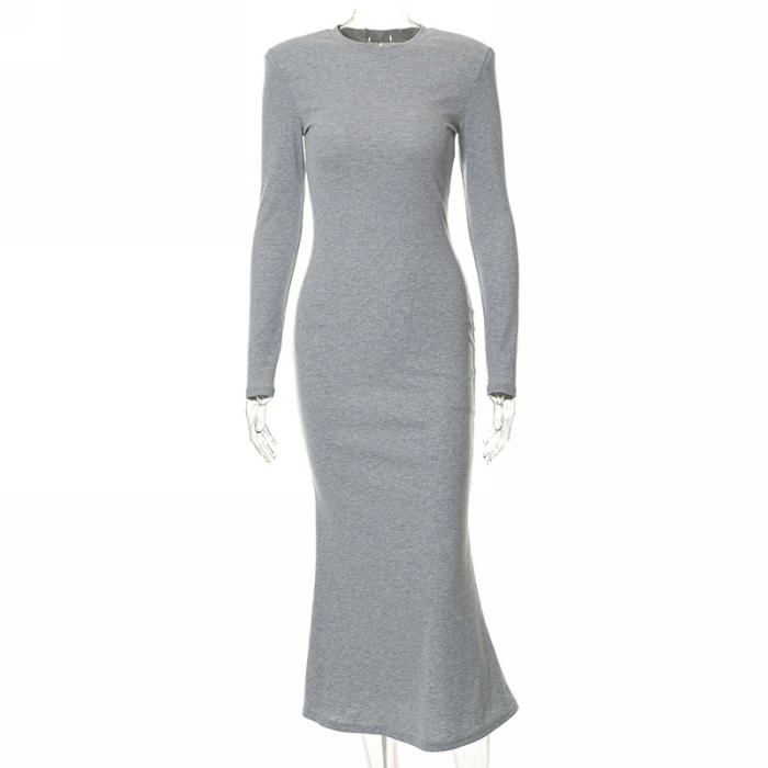 (Real Image)2022 Styles Women Fashion Spring&Winter TikTok&Instagram Styles Solid Color Long Sleeve Maxi DressSKU: #CF68163-1