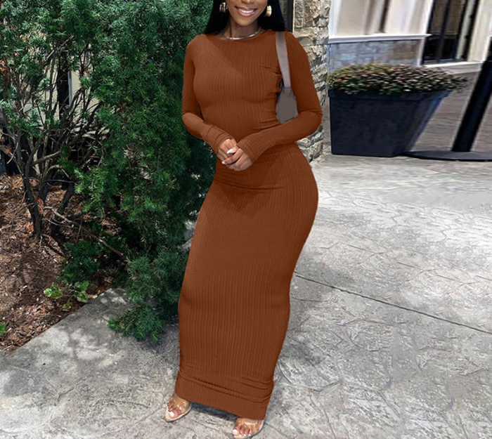 (Real Image)2022 Styles Women Fashion Spring&Winter TikTok&Instagram Styles Solid Color Long Sleeve Maxi DressSKU: #CF22870-1