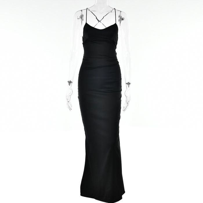 (Real Image)2022 Styles Women Fashion Spring&Winter TikTok&Instagram Styles Strap Backless Maxi DressSKU: #XF62584-2