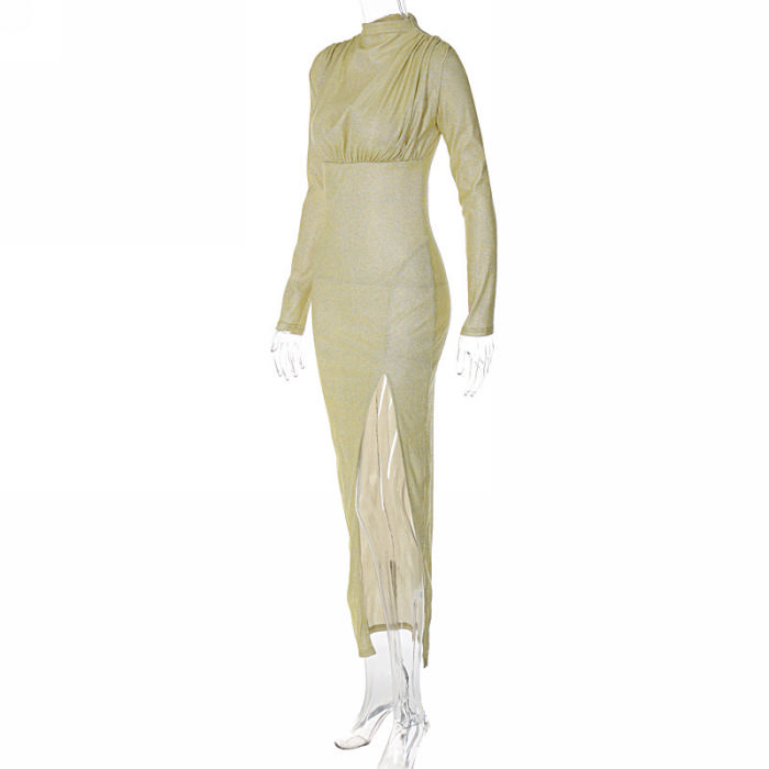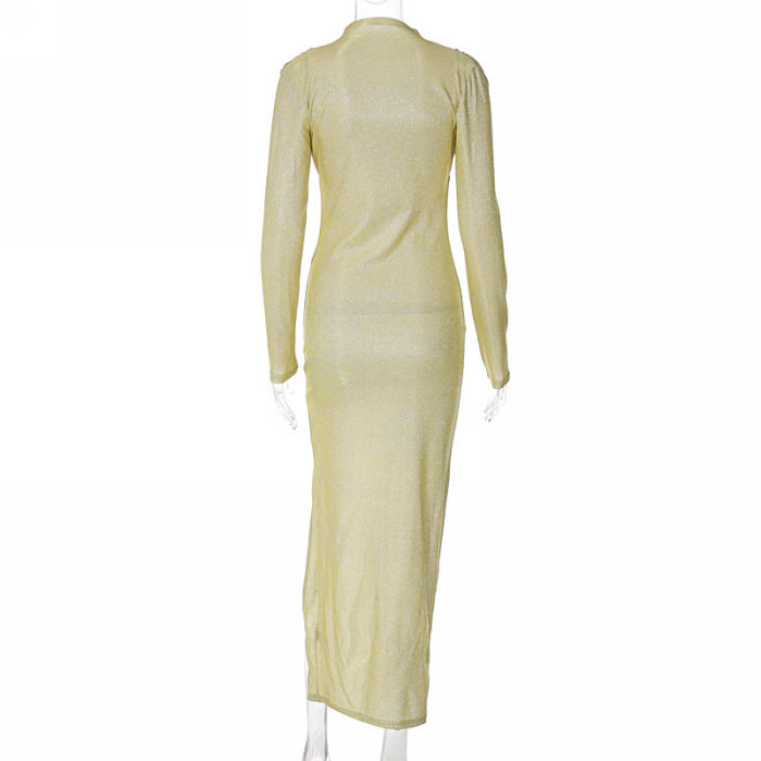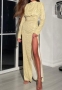 (Real Image)2022 Styles Women Fashion Spring&Winter TikTok&Instagram Styles Velvet Deep V Neck Irregular Maxi DressSKU: #CF22842-3