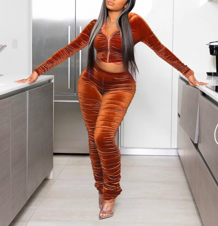(Real Image)2022 Styles Women Fashion Spring&Winter TikTok&Instagram Styles Velvet Two Piece SuitSKU: #OEM5762-3