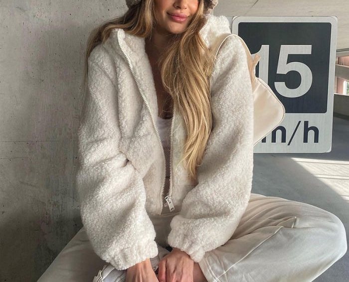 (Real Image)2022 Styles Women Fashion Spring&Winter TikTok&Instagram Styles White Front Zipper CoatSKU: #CF22853-1