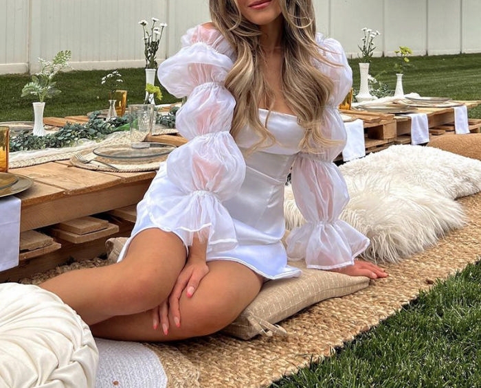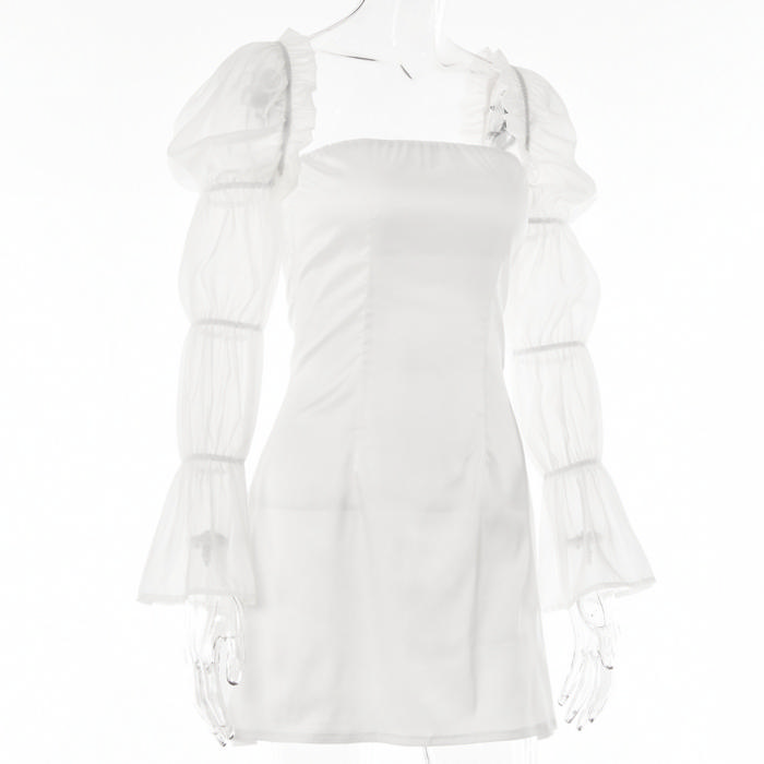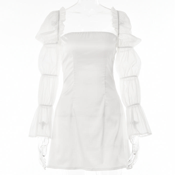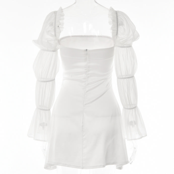 (Real Image)2022 Styles Women Fashion Spring&Winter TikTok&Instagram Styles White Lace Mesh Bohemian Mini DressSKU: #XF62586-1