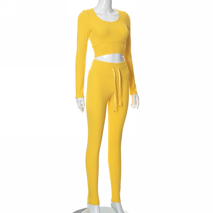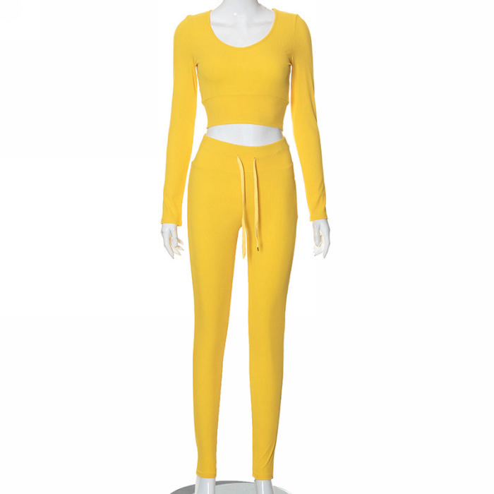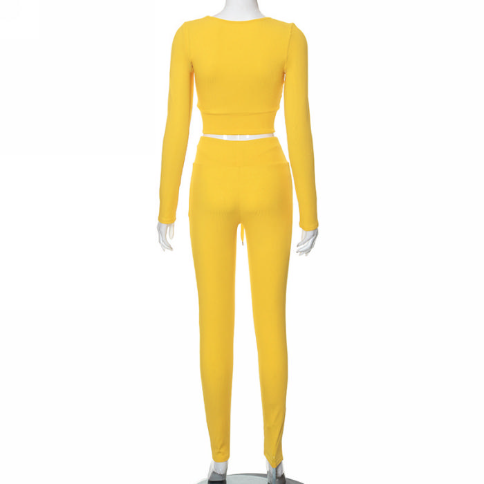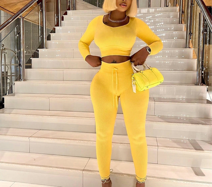 (Real Image)2022 Styles Women Fashion Spring&Winter TikTok&Instagram Styles Yellow Corp Tops+Long Pants Two Piece SuitSKU: #CF65092-1