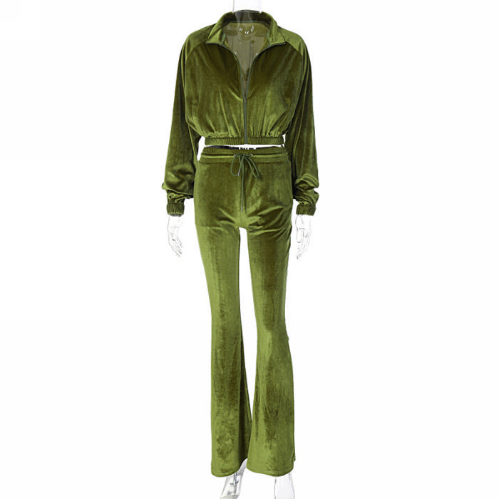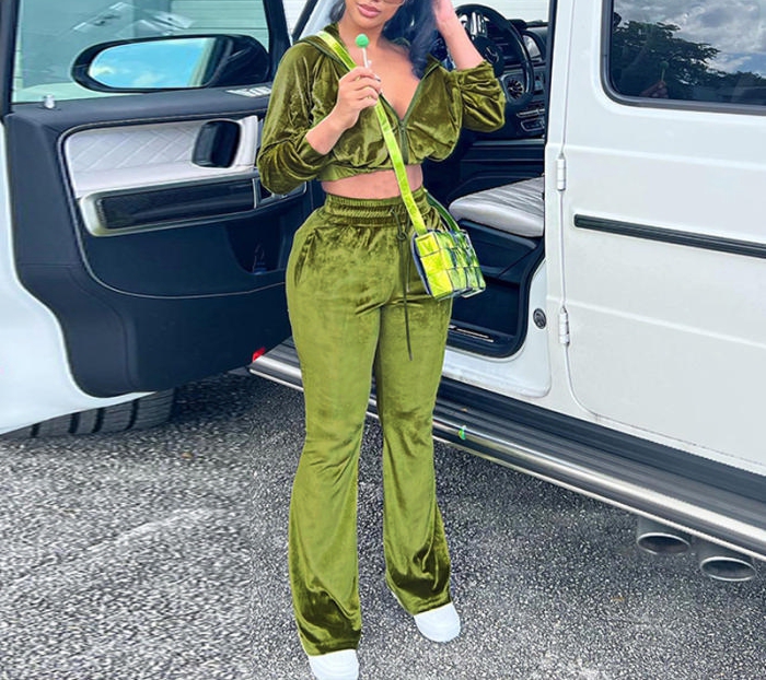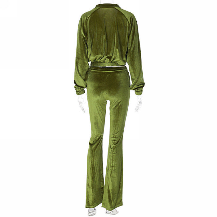 (Real Image)2022 Styles Women Fashion Spring&Winter TikTok&Instagram StylesGreen Velvet Two Piece SuitSKU: #CF22876-1