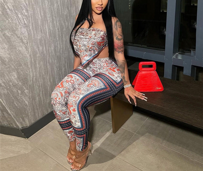 (Real Image)2022 Styles Women Fashion Summer INS Print Two Piece SuitSKU: #CF49560-1