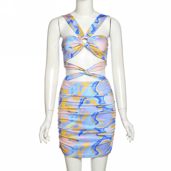 (Real Image)2022 Styles Women Fashion Summer INS Styles Bandage Club DressSKU: #CF12282-2
