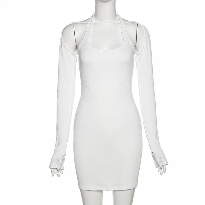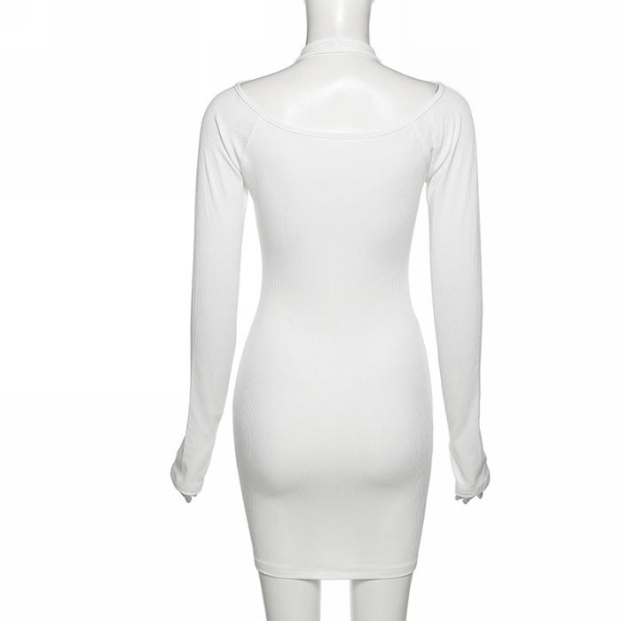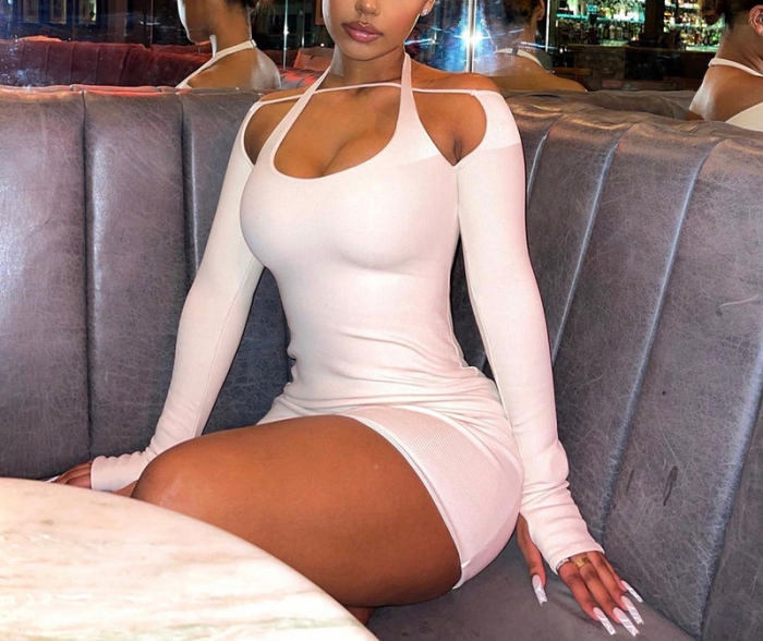 (Real Image)2022 Styles Women Fashion Summer INS Styles Cold Shoulder Long Sleeve Mini DressSKU: #CF49601-1