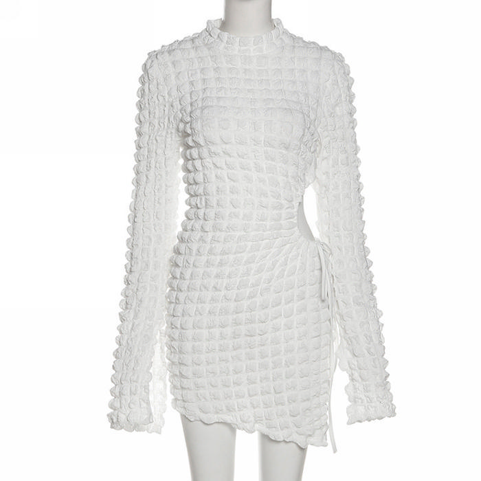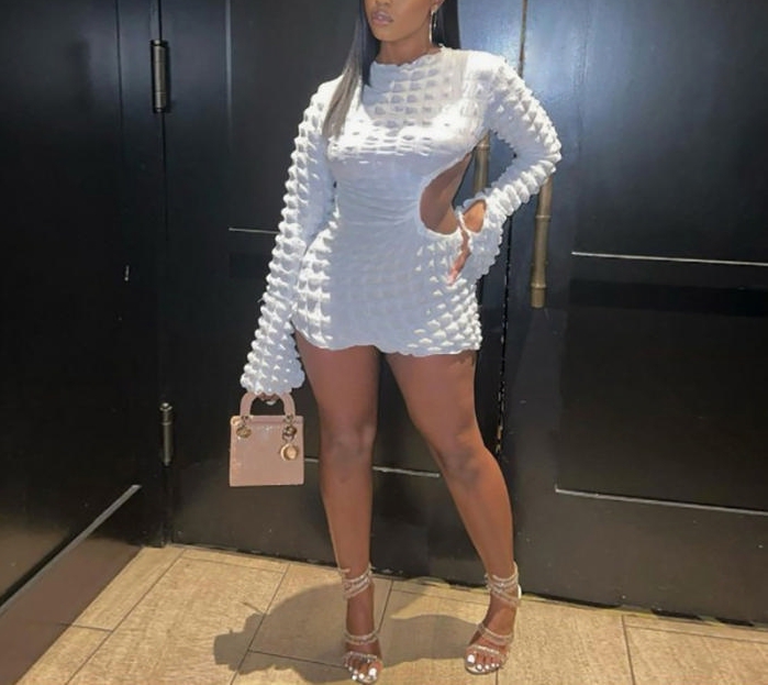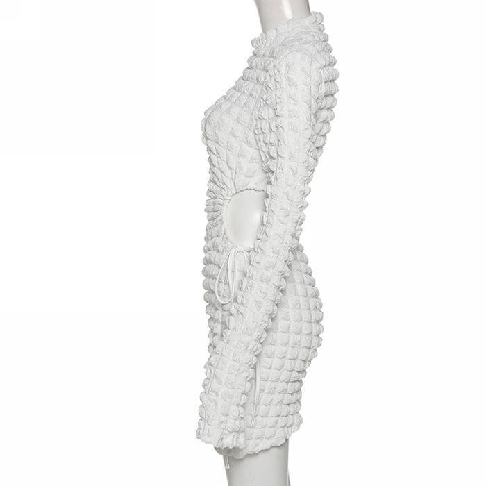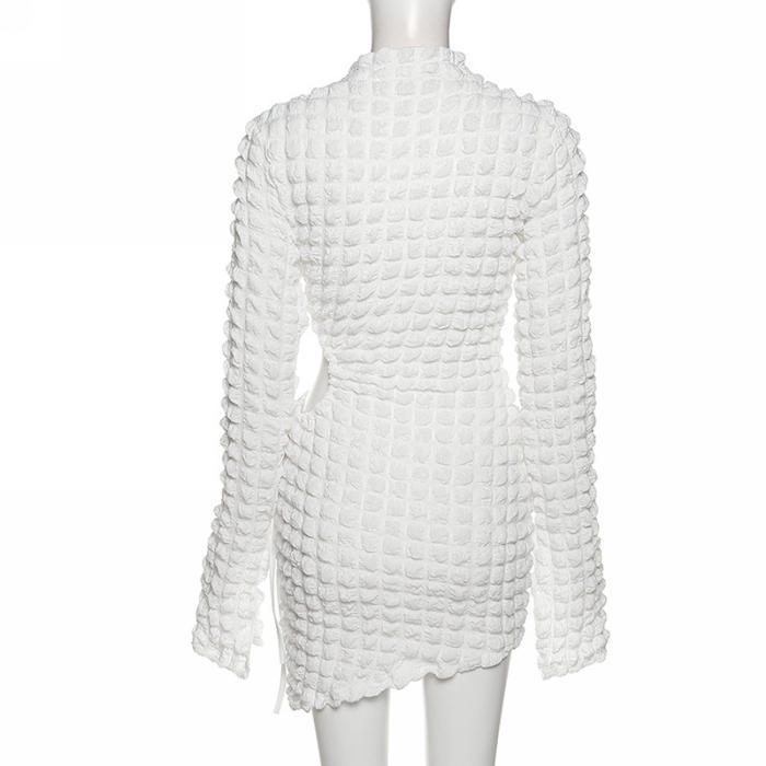 (Real Image)2022 Styles Women Fashion Summer INS Styles Cut O士 Long Sleeve Mini DressSKU: #CF48568-1